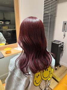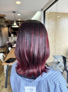 こちらの方は、わりと明るめでしたが、暗めの髪でも結構発色はいいはずです。